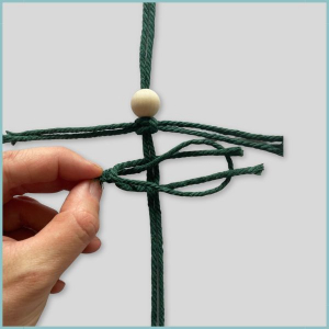 Wenn die Trägerschnur zu lang ist, kann man sie auf die Länge der zuletzt geknoteten Kordel zuschneiden.